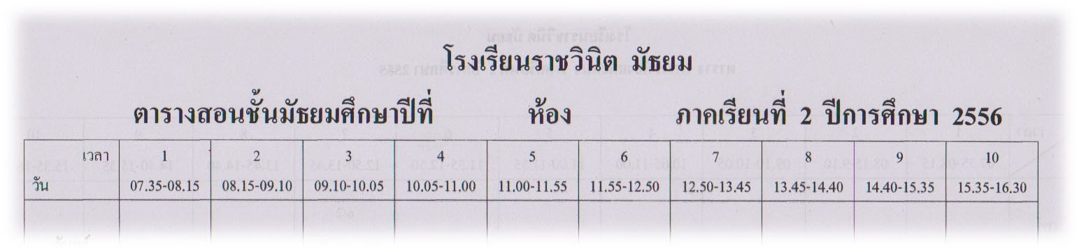 ตารางสอนภาคเรียนที่ 2 ปีการศึกษา 2556